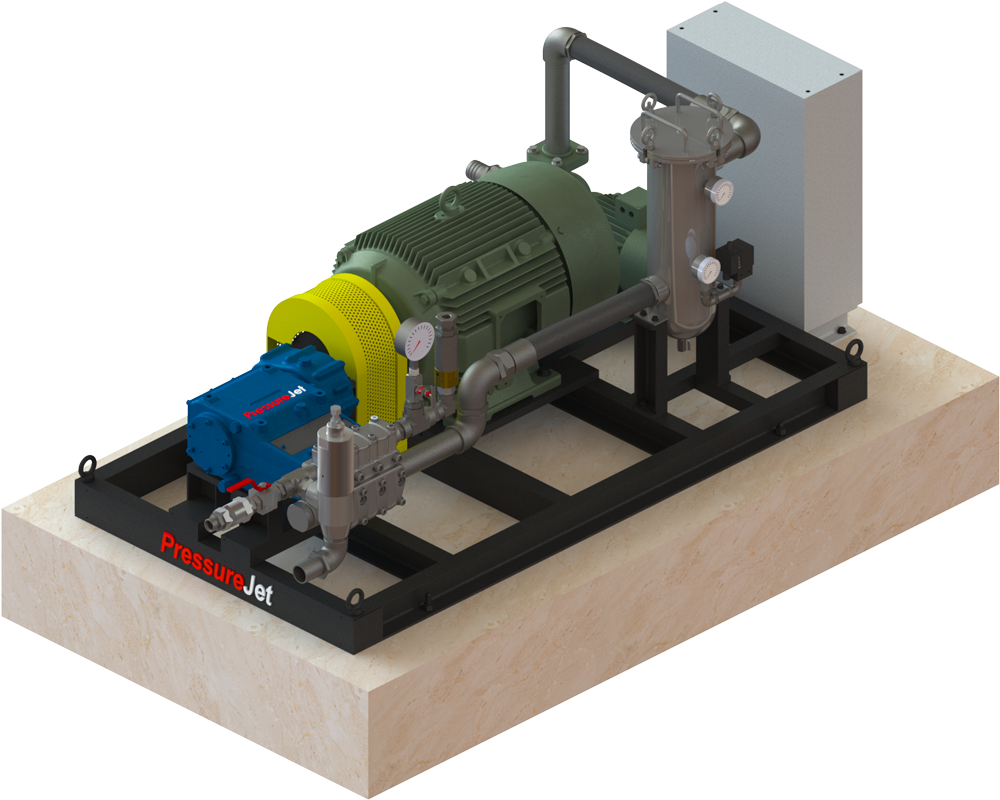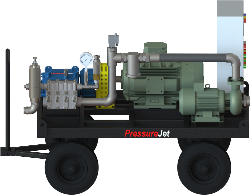 Trusted Hydroblasting Machine for Surface Preparation & Industrial Cleaning The PressureJet Hydroblasting Machine is an ultra high-pressure water blasting system engineered for the most demanding surface preparation, paint removal, and industrial cleaning applications. Delivering pressures up to 1400 bar (20,000 PSI) and powered by systems up to 150 HP, PressureJet machines provide exceptional cleaning efficiency while preserving substrate integrity. Designed for continuous-duty industrial environments, these hydroblasting systems effectively remove paint, epoxy coatings, rust, scale, cement buildup, polymers, coke, and hardened industrial deposits—without heat, chemicals, or abrasives. The result is safer, eco-friendly cleaning with reduced corrosion risk and extended asset life. At the heart of every system is an industrial-grade reciprocating triplex plunger pump, developed and validated through 200 hours of continuous-duty testing to ensure long-term reliability. Manufacturing precision is assured using 280+ quality inspection instruments, including advanced 3D Coordinate Measuring Machines (CMM), delivering unmatched consistency and performance. Available in electric motor or diesel engine drives, and mounted on heavy-duty trolley or skid-mounted frames, PressureJet hydroblasting machines are built for refineries, marine yards, cement plants, construction sites, and shutdown maintenance operations. Systems can be customized for exact pressure and flow requirements. Applications • Surface preparation & coating removal • Paint and rust removal • Kiln and cyclone cleaning • Heat exchanger & equipment external cleaning • Stone washing and texturing • Industries Served • Cement plants • Oil & gas refineries • Marine & shipyards • Marble & granite processing • Engineering shutdown & maintenance contractors Trusted by professionals worldwide, PressureJet Hydroblasting Machines deliver superior cleaning results, maximum uptime, and lower maintenance costs—driven by precision engineering, robust design, and unwavering commitment to quality.